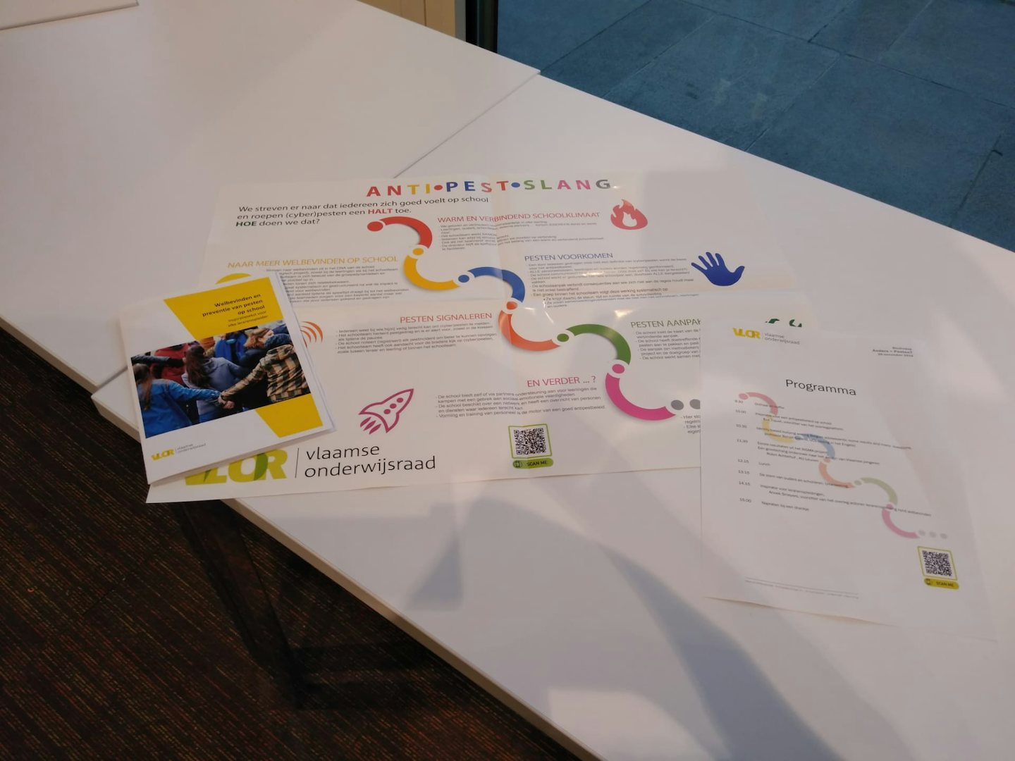 Het overlegplatform presenteerde ook eigen werk. Eva Tiquet (COV), voorzitter van het platform, stelde de poster 'Antipestslang' voor met inspiratie voor een beleid rond welbevinden op school. De poster wordt eind november via de post bezorgd aan alle Vlaamse scholen.